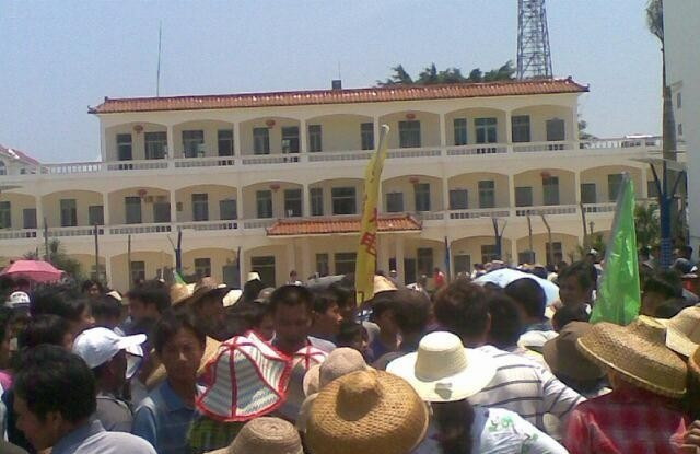 村民群情汹涌,政府人员跑到楼上不敢下来,愤怒村民冲入办公室,砸毁玻璃窗和设施。当局出动数百名特警和装甲车镇压,多名村民被打伤,数人被捕。