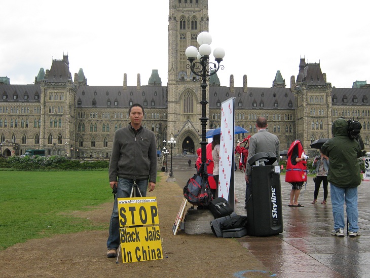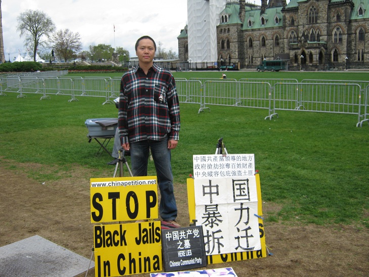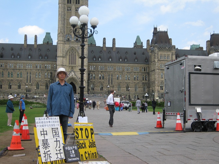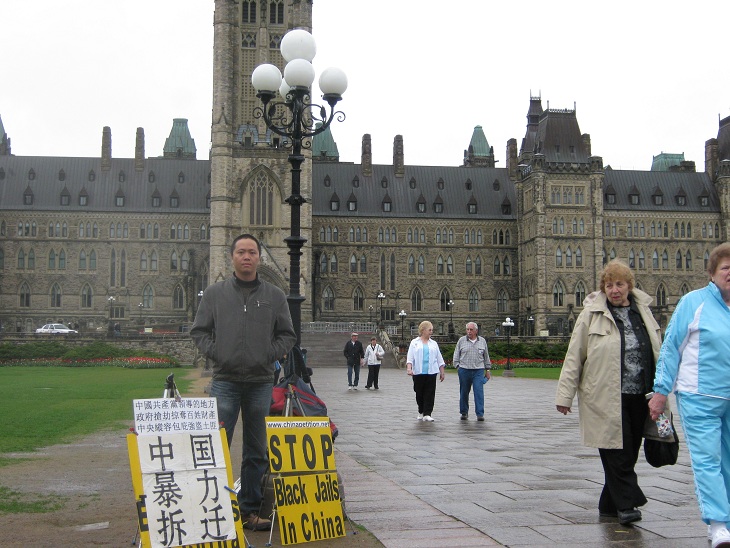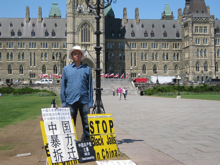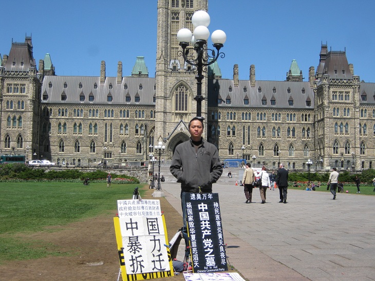 中国公民孙武俊在加国会大厦前无限期请愿抗议强拆(组图)
