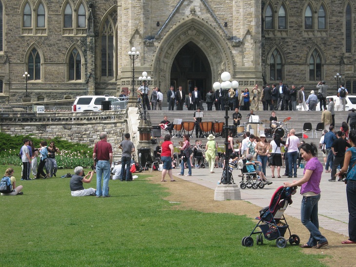 2012年5月15日,渥太华国会山上访抗议一年六个月又十五天,今天星期二,多云。今天天气也很好,来国会山的游客也很多,还有一个学校的乐队来国会山表演。