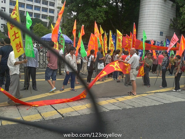 网上看到消息,江高镇以扩建广东省技术师范学院为名,征用小塘村的土地,一块地征地款是80万然后一级级的下口袋到村民只有几千块!农民非常不满。7月18日,江高镇下了最后通碟令,将在20日开始建设配套设施要求村民不得围观。村民为了阻止施工,不惜搬来煤气瓶放在地头扬言不谈妥补偿就将同归于尽。下面是6月25日小塘村村民在镇政府门口为反征地静坐抗议。(ZT茉莉花)