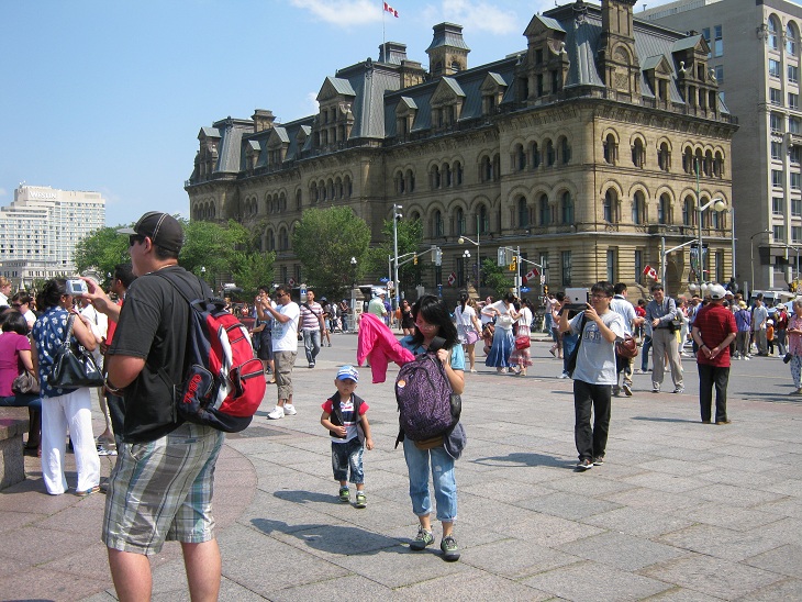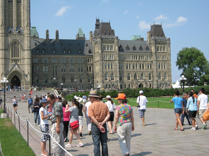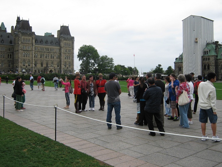 2012年7月25日,渥太华国会山上访抗议一年八个月又二十五天,今天星期三,多云。今天天气也不错,来国会山的游客也很多,还有一些旅游大巴。
