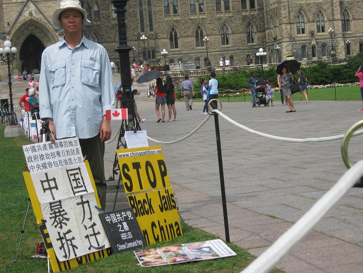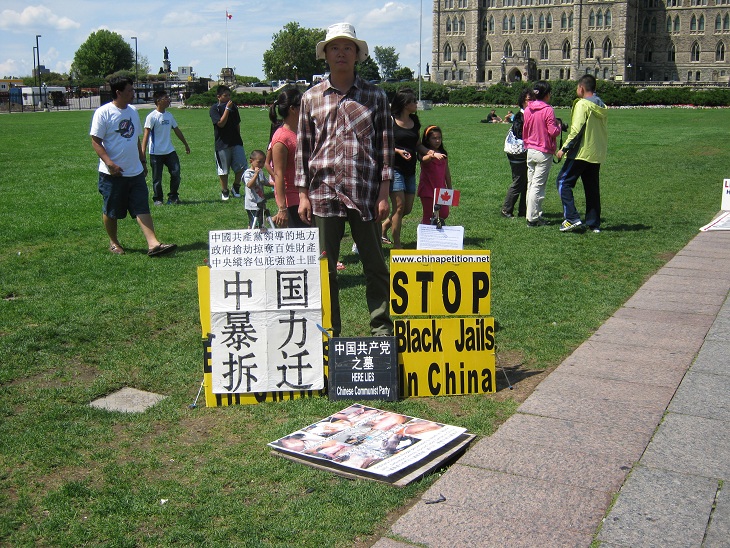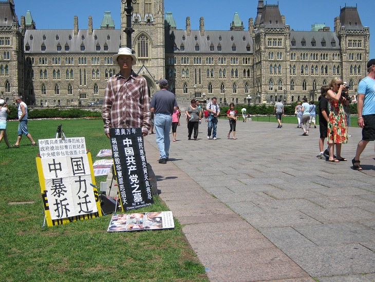 广州江高镇村民抗议贪官强征农田 加拿大首都渥太华国会山上访抗议日记2012年7月25日