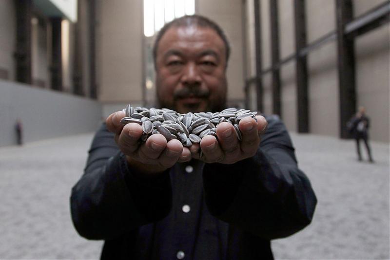 艾未未使用超过150吨的陶瓷葵花籽,铺满美术馆涡轮大厅的1,000平方米地方。