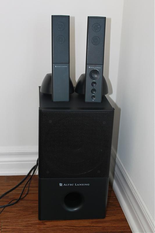 本人即将回国,特甩卖Altec Lansing 2.1电脑音箱一套。低音充沛,高音嘹亮,美观大方,节省空间,特别适合电脑、MP3、DVD播放器等。使用时间不到两年,精心保养,状态如新。PICK UP ONLY.