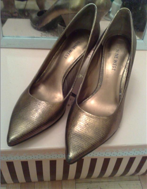 NINE WEST 的金色高跟鞋 很舒服 跟不高 5号 $30 穿了2次吧