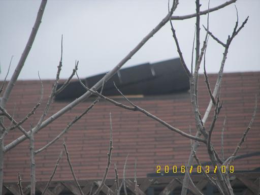 另外一种这次很多的就是大面积翻起。可以100%的说,是安装问题。很遗憾,没有照片,但是我想大家可能都见到了。这其中又有50%都是以前修补过的,可能当初只是如上图中翻起一小片,经过一番“修补”,这次遇到大风变成了一大片了。如果不改变修补方法,下次如果大风还要再大一圈。这是为什么呢?