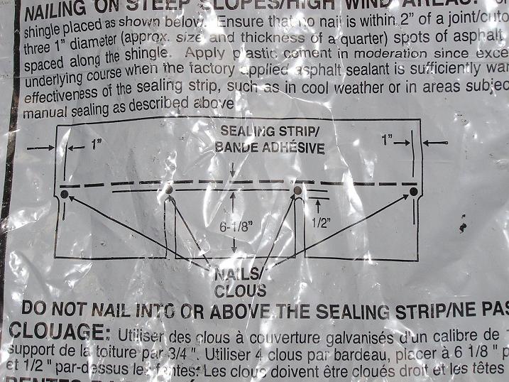 标 标准建筑 新手上路 注册 2011-02-03 消息 86 荣誉分数 1 声望点数 18 2011-05-04 #8 关于产品安装,一般都直接印到包装上。 实际上一片SHINGLE由8个钉子,和roof cement固定。 附件 P1010078.JPG 107.8 KB · 查看: 556