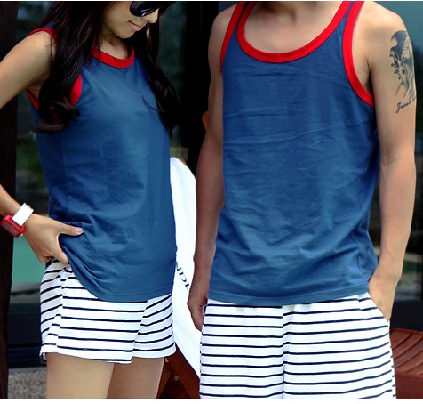 情侶套裝(1色)★ 藍色 男 女 各位情侶們 是單款一套的價格哦! 產品內容: 材質:棉 配件:同款T恤+同款短褲 彈性:有 洗滌方式:建議洗滌水溫最高不可超過攝氏30度 請避免使用烘衣機烘乾以及含有漂白溶劑的洗劑洗滌 請使用110~120低溫熨燙 請放至屋外自然晾乾 平放量單面尺寸 (單位:CM) 《均碼》 男: 全長:70cm 胸圍:108cm 袖長:無 肩寬:無肩縫 褲子: 褲長:54cm 腰圍:100cm 臀圍:116cm 腿圍:56cm 女: 全長:62cm 胸圍:88cm 袖長:無 肩寬:無肩縫 褲子: 褲長:26cm 腰圍:86cm 臀圍:100cm 腿圍:52cm