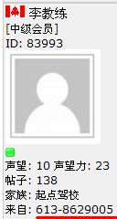 本人由于在魁省考的驾照,所以想请一个对魁省路考熟悉的教练。当然安省的教练只要懂得魁省的路线以及优良的教学手法也可以。但是要华人,讲普通话。 要求速成,马上就考试啦。没有开车经验。 有意着 或者 有知道相关信息的朋友请给予 回复。 谢谢 联系方式 6132997752 qq 275300719 邮箱kunda123@hotmail.com
