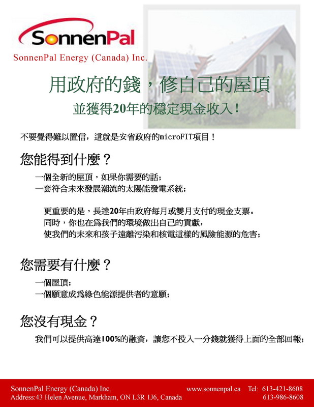 安省MicroFIT项目:无需投入一分钱,只需利用您闲着的屋顶,便可获得20年稳定的现金收入!