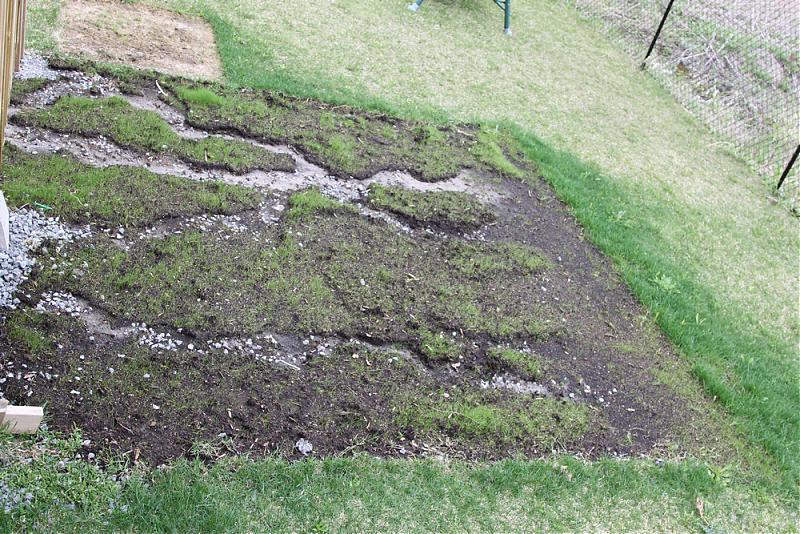 1〉首先把碎石子全部检走,在把土翻一遍(不要铲走,可以留用),看照片土地有坡度,最好整平,如果勤快的话就去Homedepot 买那种室外用的一尺高度的木板围在四周(偷懒的话至少围在地势低的那一端), 否则一下雨土及肥料会被雨水冲走