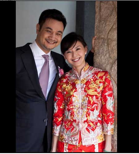 32岁的歌坛小天后孙燕姿8日在圣淘沙Capella Hotel嫁给相恋5年的纳迪姆,两人甜蜜结婚照率先曝光,孙燕姿满脸幸福笑容,十足小女人模样,连换3套礼服,中西合璧,其中两套典雅白纱,露出A奶浅沟,另一套大走中国风,红通通的旗袍凸显小天后的独特品味。