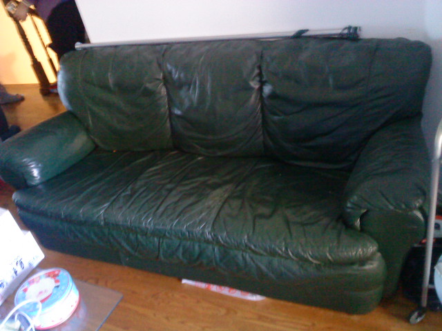 16 and 17. A set of leather sofa (two Dark Green, one is for 2 people, and the other for 3 people) $125