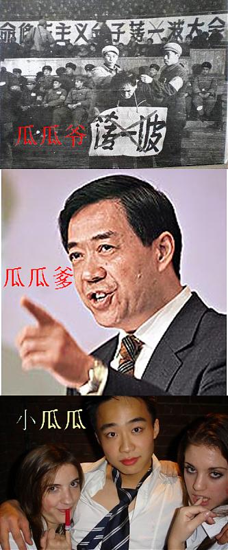 上亲手赏了瓜瓜爷致命的一拳, 以示劃清階级立場。瓜瓜爹是薄家中唯一跳出來攻擊已在中共權爭中失敗的父親瓜瓜爷的子女。(当然,瓜瓜爷 后来 原諒了瓜瓜爹, 因为他的子女中唯有瓜瓜爹繼承了他的政治專長 ----他的其他子女更熱心于經商,長子薄熙永在香港光大任副老總,三子薄熙成在北京從事酒店管理。)