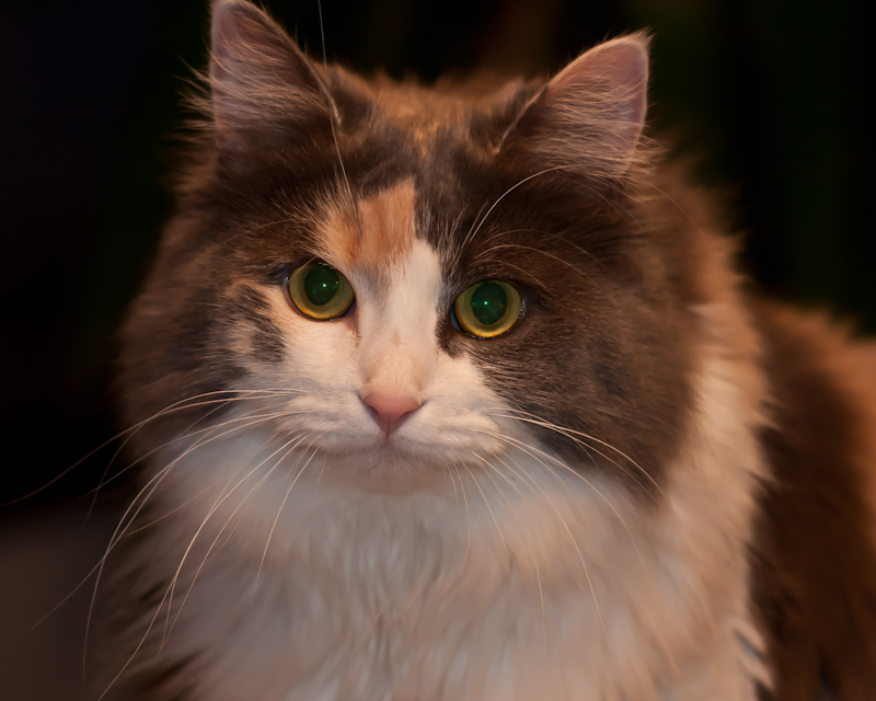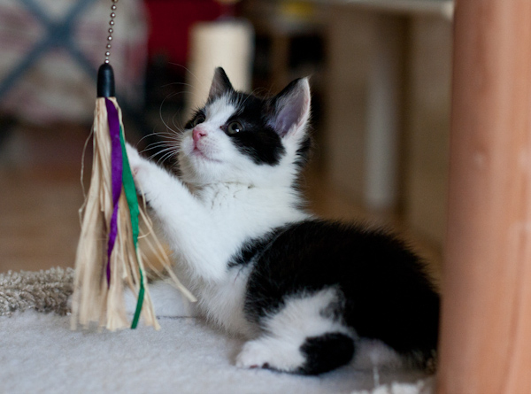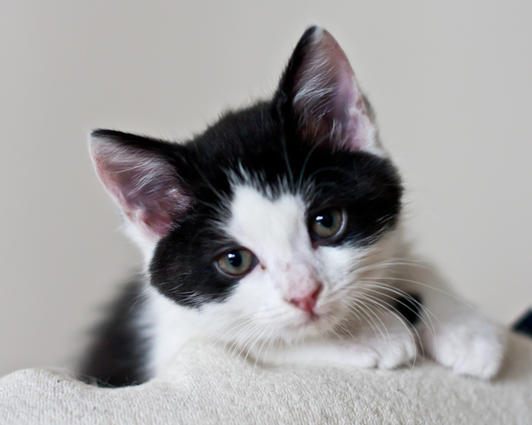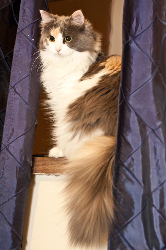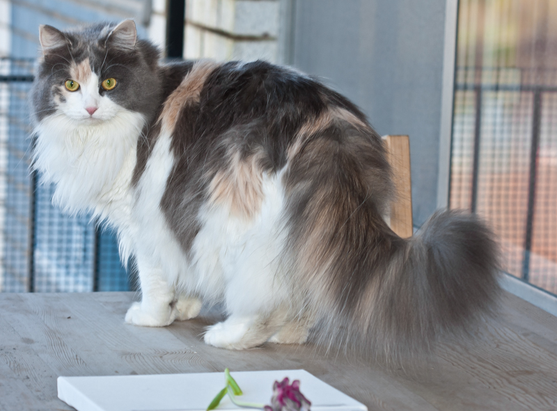 一年前从human society收养的将近四个月大的小猫。刚来的时候刚做完绝育手术,捧在手里,犹如纸片般的轻。一年过后,出落的相当的标致了。