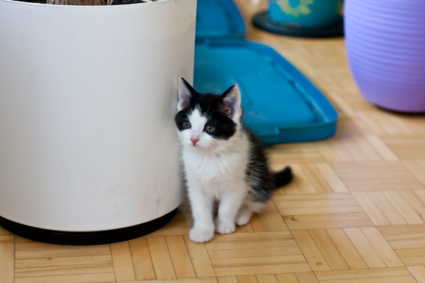 四天前天同事在单位停车场发现的小猫。问遍了周围所有的住家没有人家丢失小猫。周遭同事们也因为各种原因无法收养。于是她成为了贵妃的妹妹。像Edith Piaf 一样,她的声音也很独特。兽医说她has a strong heart. 希望Piaf (法语小麻雀的意思)永远幸福健康。