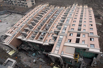 上海一幢13层的楼房倒了,倒的姿势是那么的舒坦,令众人大呼邪气。是呀,整整一幢楼、13层高,平平展展地躺在那里,窗户玻璃竟然还能有完好无损的,楼身没有开裂崩碎、墙身没有塌陷散落,那微微弯曲的躯体,散发着一种怡然的叹息,绝对可以堪称“楼坚强”而载入上海世界吉尼斯大全里面。