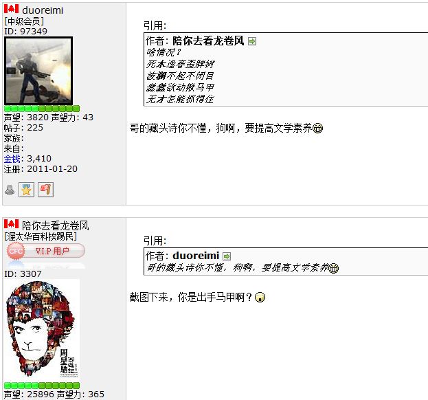 ID“该出手时就出手”今天在我这个楼里就撒了谎。他说他不知道duoreimi是何许人。老魏在23楼也指出来了,出手玩文字把戏,故意把duoreimi的字母拼错。但是也无妨,出手不止在这一个地方对他的朋友们表示过他不知道我所说的这个duoreimi是何许人,所以他也没理由以字母拼写不一致再否认自己说过的话了。