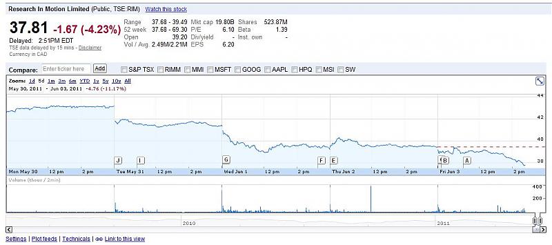 五天内,连跌11%。回想今年四月,RIM的一个高级主管还说“没问题”,"We are still the number one in North American Cell Phone Market"。北电网络也曾经是世界光网设备商的第一名!历史会重演吗? LZ实在是高人呀!