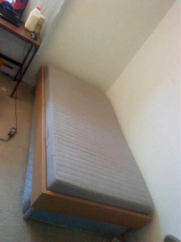 售IKEA单人床及小桌一张, 整张床40刀,单买床垫35刀,床架10刀,桌5刀,请自取,此帖有效期至6月30日。联系电话 6136006998