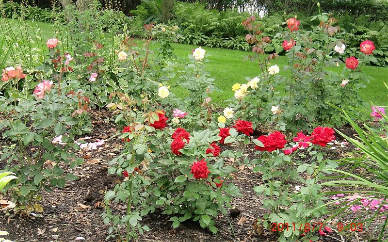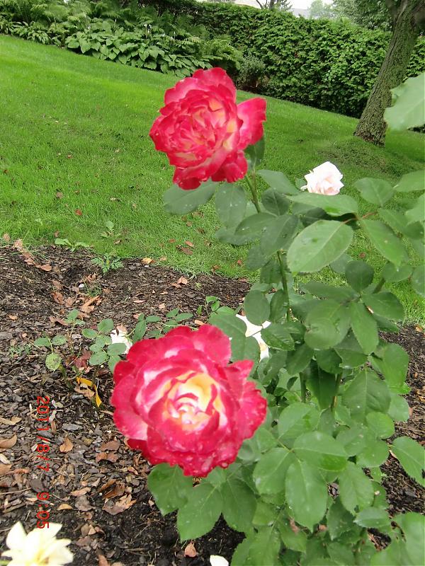 拍了一张double delight的照片,可以对照dick clark观察一下它们叶片和花的差异。第一个和"double delight"好像。有没有整个rose garden的图片?