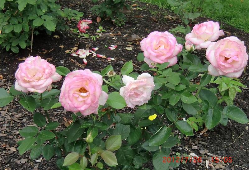 本来高高兴兴的camping归来,下车却发现种在和邻居家边界上的John Davis被新搬来的邻居无情的给剪断了。我承认这家伙过界了一点,我也没来得及给绑到arbor上。我还在等她长得更长一些。被剪断的2支刚刚露出花骨朵。这株玫瑰是我春天从后院移过来的,可能伤了根,从春天到夏天就没正经开花,好不容易要开了,就被辣手摧花了。越界的长度也不过10厘米。然后还被抱怨说我紫色的剑兰被风吹到ta的车上,把ta的车给弄紫色了。