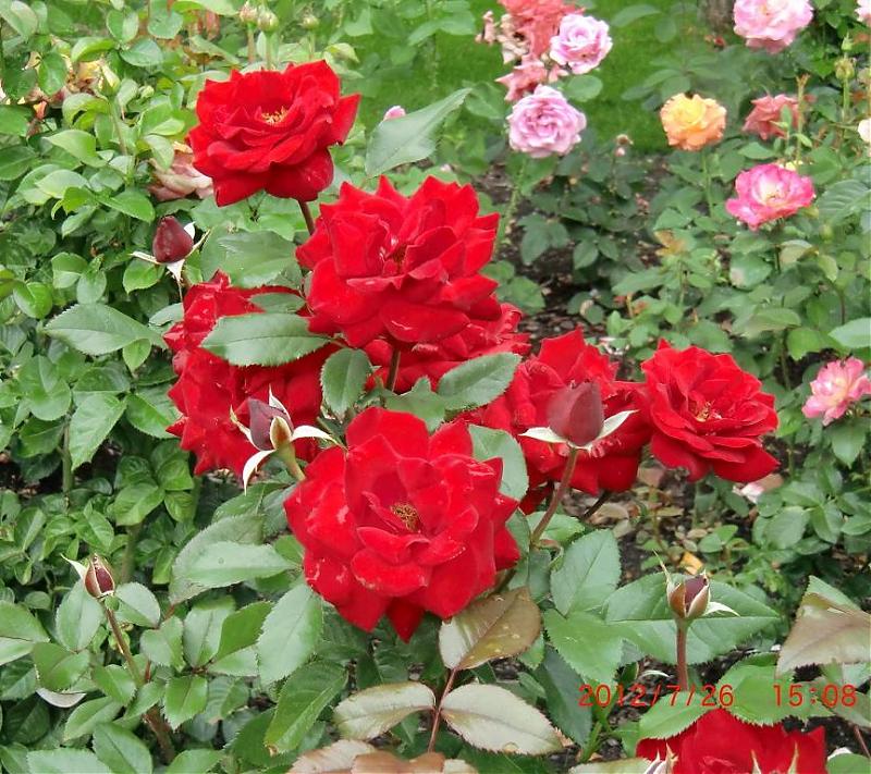粉色的是第二拨,红色的一直没间断不知道该算第几。今年的天气太热,影响玫瑰的生长,下拨开花会好转,另外需要追些肥。