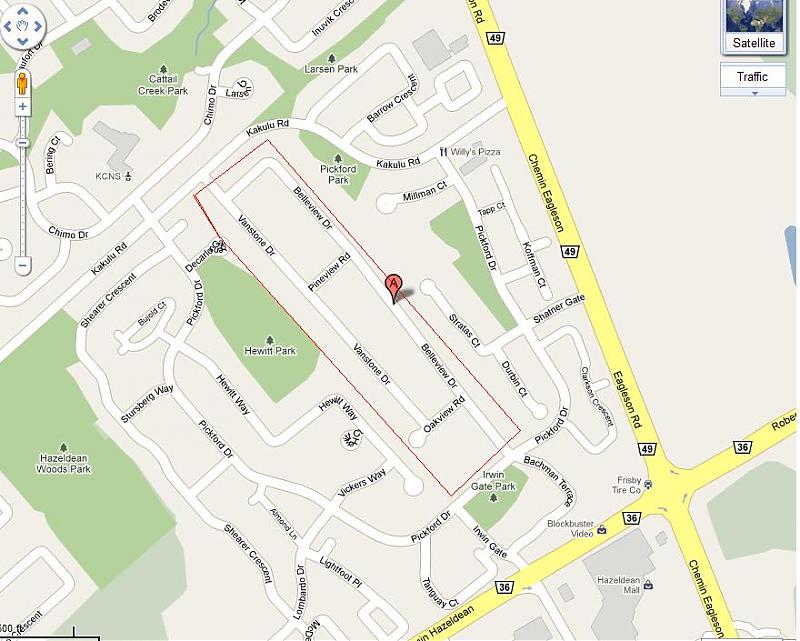 VanStone Street and Belleview Dr (just opposite of the Katimavik Elementary School).