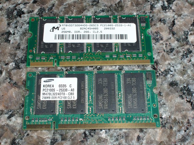 Two 256MB DDR 266Hz Laptop RAM Sticks PC2100 CL2.5 -- $5/each