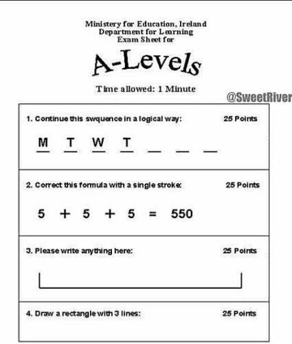 旭 旭日阳刚 新手上路 VIP 注册 2011-02-15 消息 3,129 荣誉分数 129 声望点数 0 2011-07-10 #2 1. M T W T M T W 2. 加一撇,不等于 3. I am a genuis! 4. 在底边上画三笔。
