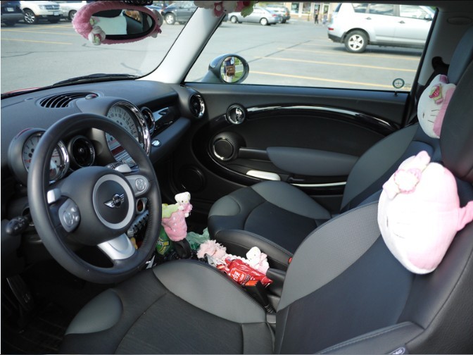 2.一套 全新Hello Kitty 车内装饰 包括座垫 靠枕 方向盘套 反光镜套等等 车主买了两套 一套还没用过