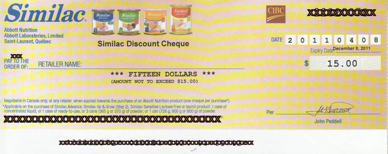 我也有同样的奶粉现金券, 有人感兴趣吗? 还有一罐 STEP1 SIMILAC ADVANCE WITH OMEGA-3 & OMEGA-6 奶粉(EXP 2014 MAR.) 和5 DOLLAR COUPON FOR SIMILAC ADVANCE, 一罐SIMILAC SENSITIVE LACTOSE FREE FOR GAS AND FUSSINESS (EXP2012JULY) 和5DOLLAR COUPON FOR SIMILAC SENSITIVE.