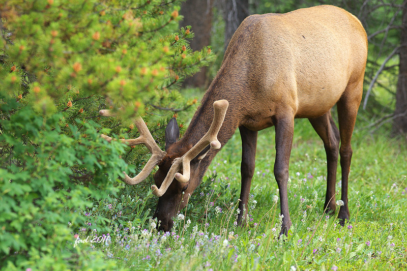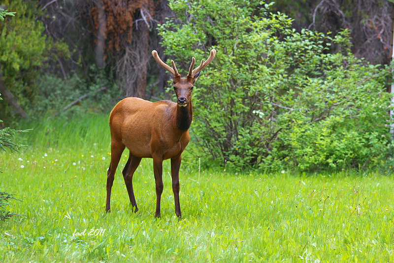从瀑布回来又往前开了一段, 远远看见路两边有停了一串串车, 肯定有动物, 赶紧停下来, 换上短炮, 跑步跟进, 儿子也很兴奋, 拿着小数码更过来,