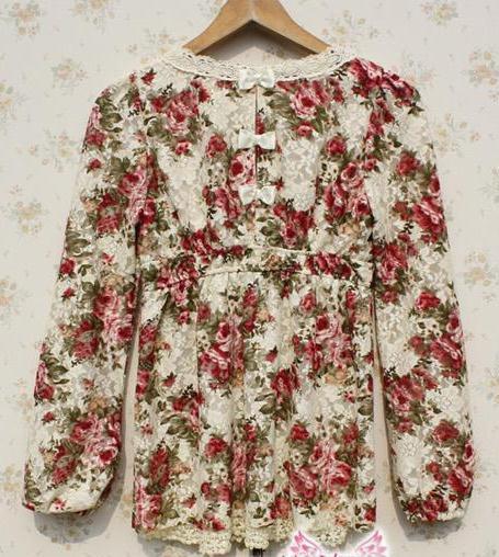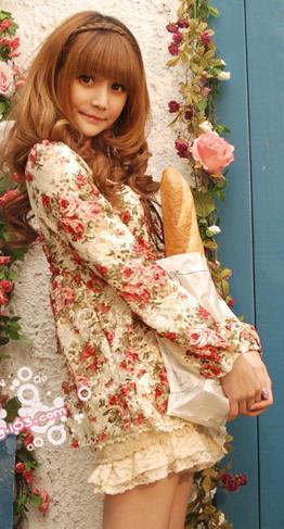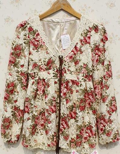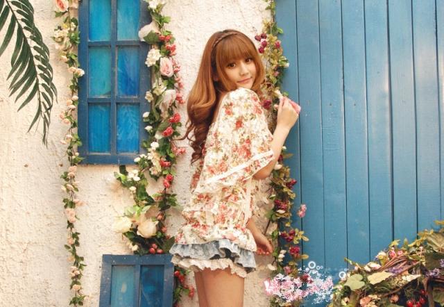 田园风~可爱又春意浓浓的蕾丝装(米色碎花)
