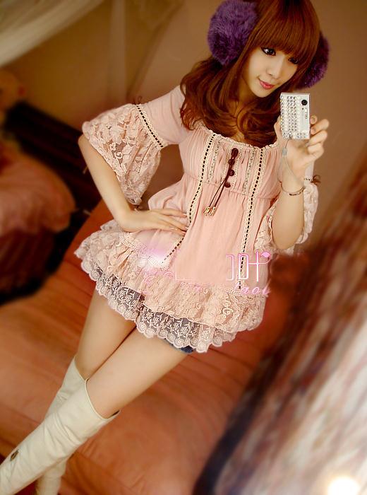 原单蕾丝复杂工艺拼接水袖上装衫 65