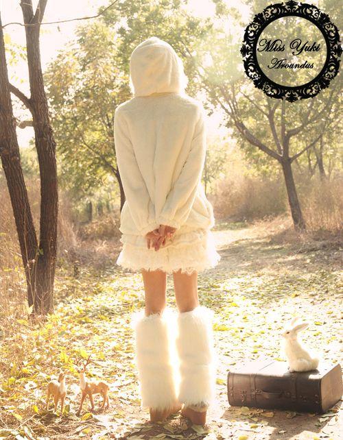 内里是玫瑰花.外面的料子是软绵绵毛毛的那种.帽子上有一圈兔毛.