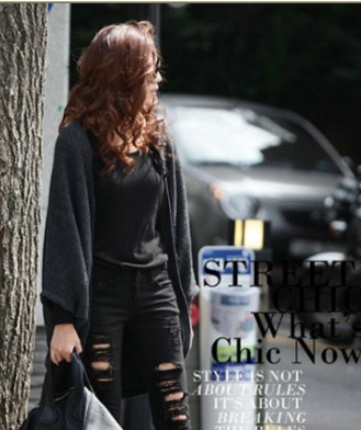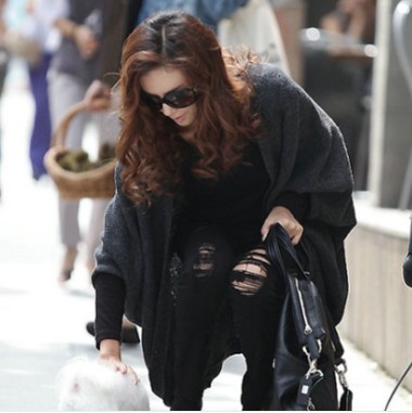 欧美风蝙蝠袖羊绒混纺披肩(百搭黑) SIZE S