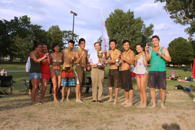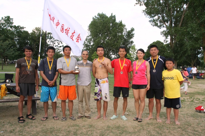 由渥太华中国校友会主办的第十届加华杯沙滩排球赛,经过一天紧张而激烈的鏖战,于七月二十三日下午六时许在Mooney’s Bay 落下帷幕。 新思维(Good Idear), 老枪队和黑马队分获本届比赛的前三名。 比赛结束之后,组委会在沙滩上举行了简短而热烈的发奖仪式。中国驻加使馆张伟才公参,王向阳参赞及一等秘书李庆国先生分别为冠,亚,和季军队颁发了奖杯和奖牌。参加本届比赛的十二支球队在新赛制下本着友谊第一的精神,比技术,比体力,和比参赛技巧。 各队在收获排名的同时也增进了彼此的友谊。大家可能也注意到越来越多的非中国裔的排球爱好者加入到本届比赛。