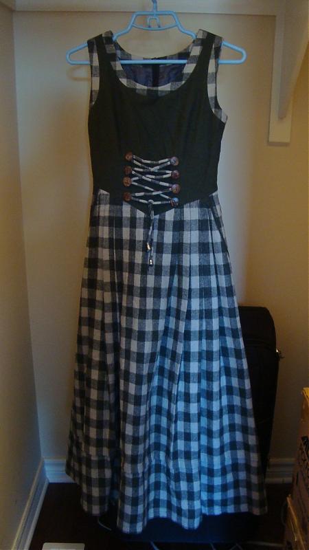:)超保暖的呢子连衣裙,质量好,有内衬,几年前定做的,没穿过几次。很长,本人162cm快到脚踝,很容易改短。($15)