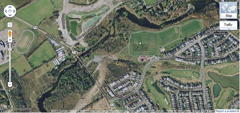 location: starting from the parking lot ofw.c. levesque park, Stone Bridge - Jockvale Rd. to Stoneriver Dr. Circled on the map.