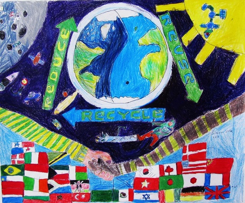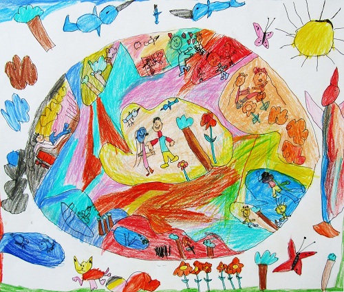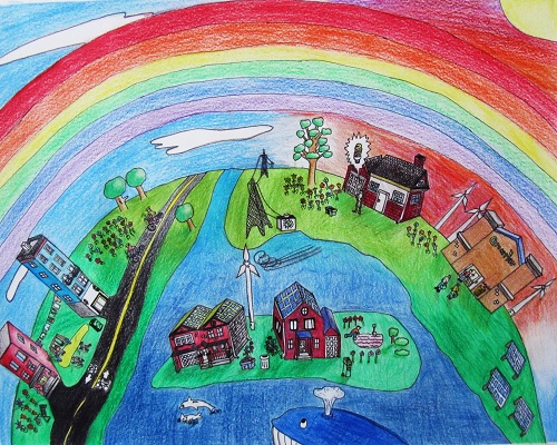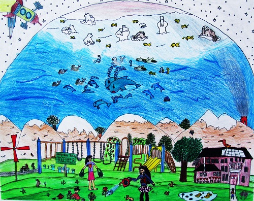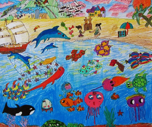 知道了这个方法,女儿可高兴了!路老师告诉她这也是需要学的一种绘画技术。第二天,女儿带去了新的画。地球更大了,主题更鲜明了,部分色彩也都涂好了。这时离征稿的截止日期只有两天了,路老师说,这次不能再改了,因为已经没有时间了,后天我就要将所有参赛作品寄出去了。