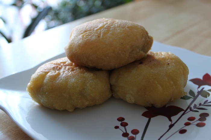 炸糕 每次回家,第2天的早餐一定是我爱吃的:炸糕,杂粮煎饼,小笼包。。。这些都是我爱吃的,首推当然是炸糕。 胖嫂子馋这口有日子了,话说有天看到一帖做粘豆包,就啄麽着如果有糯小米,我就先拿来做炸糕,终于被我发现了,买回家磨碎过筛捣制。。。当当,又香又糯的黄米面炸糕出锅了,一口咬下去,滚烫的豆沙,酥脆的外壳拌着糯黄米的香气,感叹"人生不过如此"。 这次美中不足是外皮没有炸出更多的泡泡,不过已经很满意了。