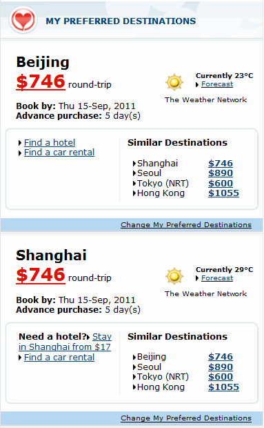 加航机票便宜一些了: 村里来回北京/上海 Sep 14 746; Nov-09 668; Dec 1 618