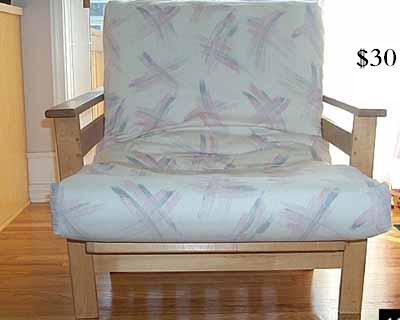 可折叠的小沙发,放倒靠背就是小孩床,两边的扶手可防孩子掉下来.买时很贵,$20