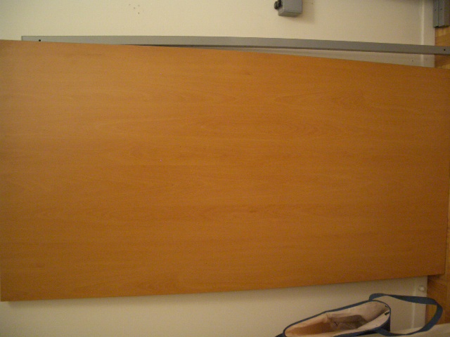 桌子表面没任何划痕,非常新,质量也非常好。搬家的时候,弄丢了螺丝。 有需要的朋友需要自己去配螺丝。所以便宜买, $25. 原价是150多打得税。