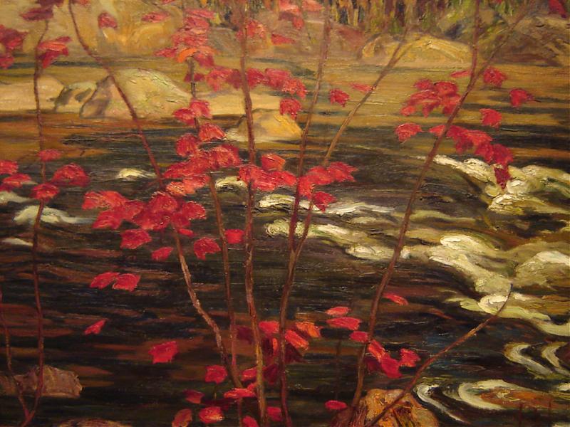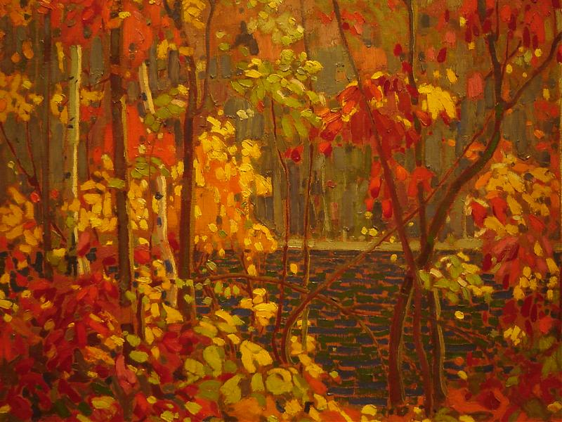 枫叶红了,想到阿岗昆去观赏秋胡枫叶,可是天不作美,只好去画廊看汤姆-汤姆森(Tom Thomson)和“七贤社”(The Group of Seven)的画。