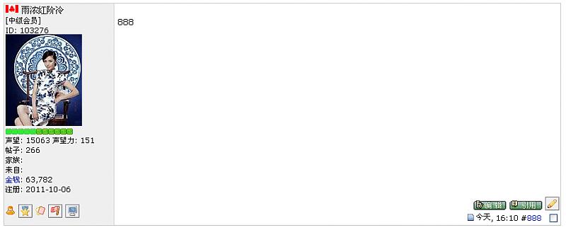 ccc 难得糊涂 管理成员 VIP 注册 2003-04-13 消息 238,333 荣誉分数 37,522 声望点数 1,393 2011-11-02 #885 雨浓红阶冷 说: 9494我刚当了一秒钟的888楼主就被掀翻了 谁那么缺德啊:flaming: 点击展开... 你自己删除了两个帖。哈哈 Now see this: ... 附件 888.jpg 22.6 KB · 查看: 188