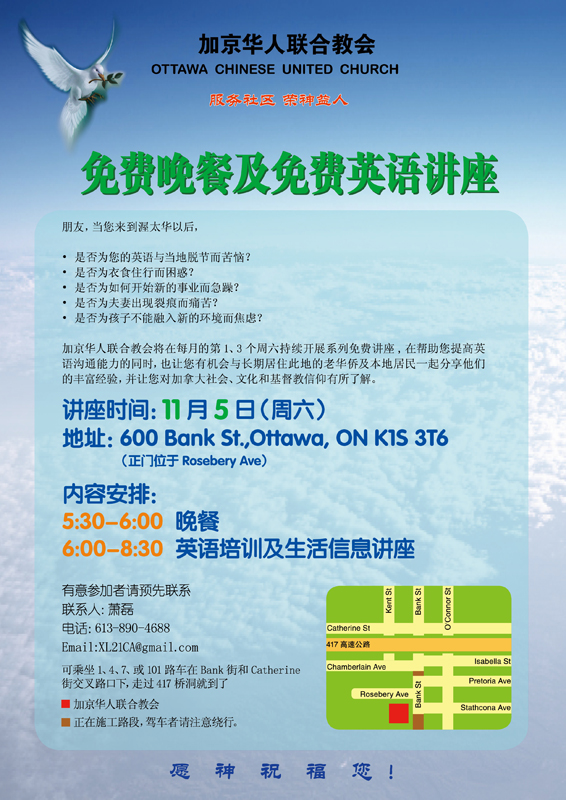 C ChineseUnitedChurch 新手上路 注册 2011-10-10 消息 31 荣誉分数 0 声望点数 0 2011-10-31 #1 免费晚餐及免费英语讲座 附件 OUTREACH-1.jpg 389 KB · 查看: 339 OUTREACH-2.jpg 125 KB · 查看: 338