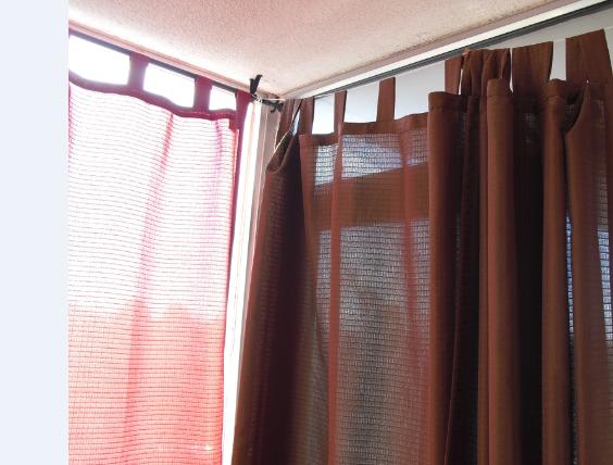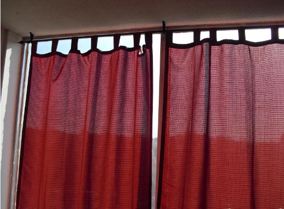 落地式窗帘。$10每面。共7面。5面红色的,2面褐色的。
