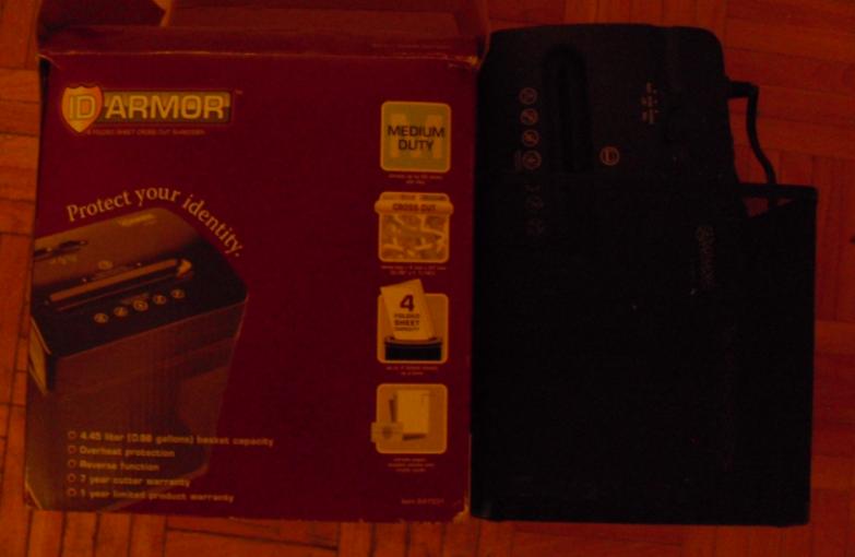 便携式 ID Armor shredder(碎纸机), $10. 可以很方便地铰碎银行帐单等,保护个人隐私。